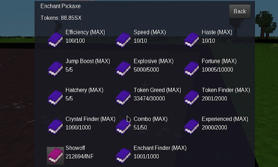 Level up your pickaxe with stronger enchants by right clicking your pickaxe.